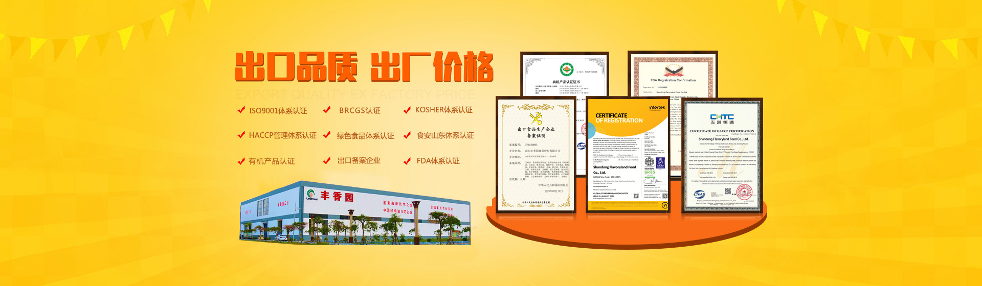 公司獲得HACCP國際質(zhì)量體系認(rèn)證、ISO9001:2015質(zhì)量管理體系認(rèn)證,產(chǎn)品獲得美國FDA認(rèn)證、美國、歐盟有機(jī)食品認(rèn)證、英國BRC體系認(rèn)證、A級(jí)綠色食品認(rèn)證、GB國標(biāo)有機(jī)食品認(rèn)證。