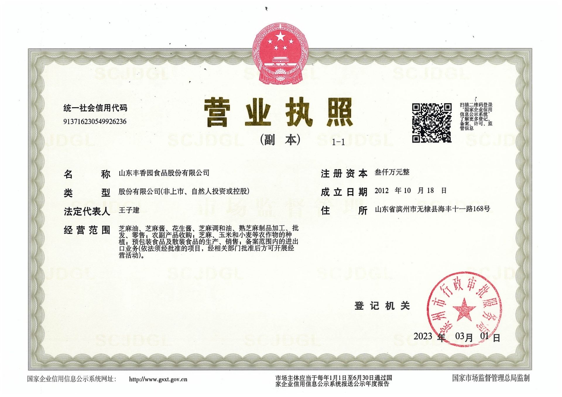 山東豐香園食品股份有限公司位于無棣縣西城工業(yè)園,成立于2012年,注冊(cè)資本3000萬元,員工60多人,年銷售收入8000多萬元,是“國家高新技術(shù)企業(yè)”、“中國好糧油”示范企業(yè)、“食安山東”示范生產(chǎn)加工企業(yè),公司集綠色、有機(jī)芝麻食品標(biāo)準(zhǔn)化、生產(chǎn)加工、研發(fā)、出口銷售為一體的山東省農(nóng)業(yè)產(chǎn)業(yè)化“重點(diǎn)龍頭企業(yè)”。